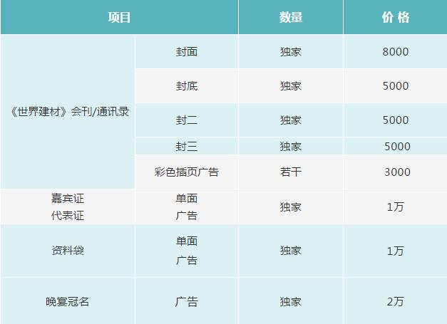 1、會議贊助:為廣泛宣傳先進(jìn)技術(shù),打造行業(yè)品牌,歡迎中外知名廠商協(xié)辦會議。會務(wù)組將在會議通知、網(wǎng)站、媒體廣告、會議消息、會議背景板、會議場地等媒介上顯著標(biāo)明協(xié)辦單位名稱,同時將為協(xié)辦單位免費(fèi)提供一版論文集彩色宣傳頁廣告,會議期間免費(fèi)提供產(chǎn)品推介活動,安排展示場所并在會議上做專題報告,對企業(yè)的產(chǎn)品進(jìn)行宣傳或在《世界建材》雜志和中國建材技術(shù)網(wǎng)上刊登廣告。協(xié)辦會議不低于3萬元,根據(jù)費(fèi)用情況,提供相應(yīng)或增值服務(wù)。提供會議禮品、辦公用品贊助,請及時與會務(wù)組取得聯(lián)系。