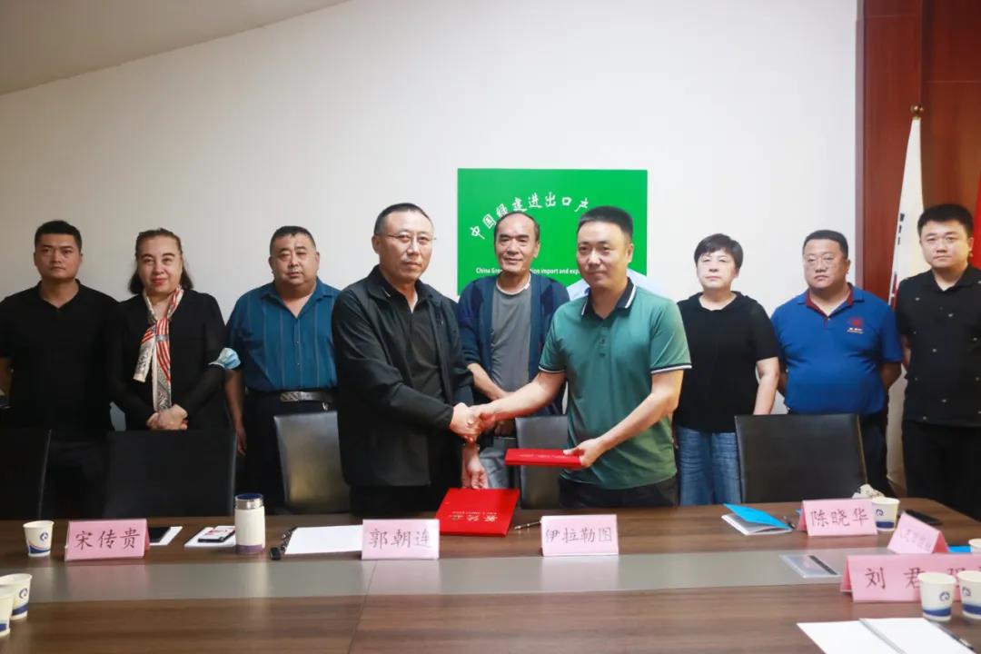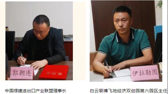 情報所·中綠建進出口產業聯盟理事長郭朝連與白云鄂博飛地經濟雙創園第六園區主任伊拉勒圖雙方代表簽訂了戰略合作協議。